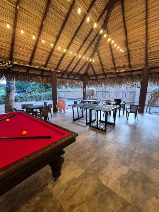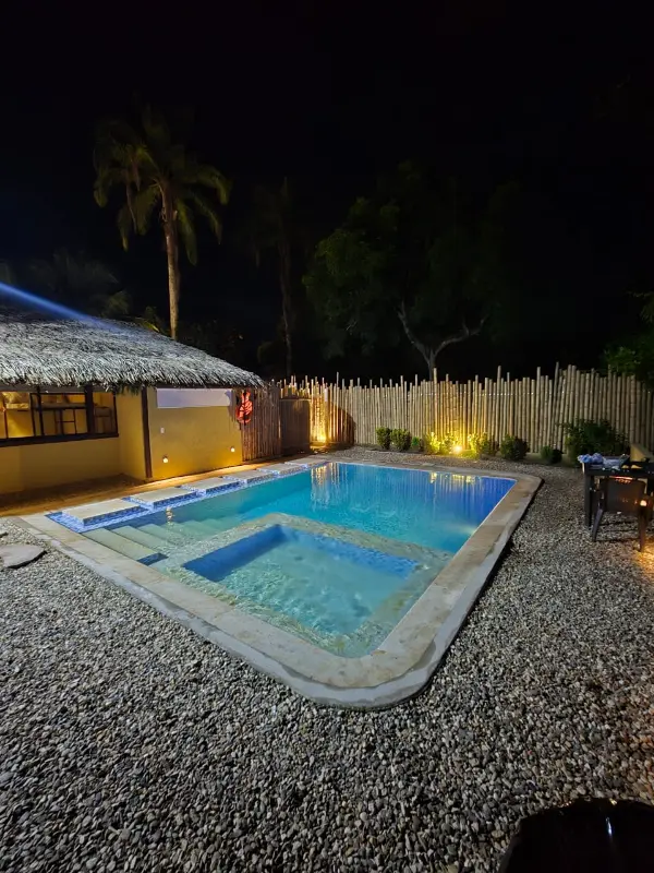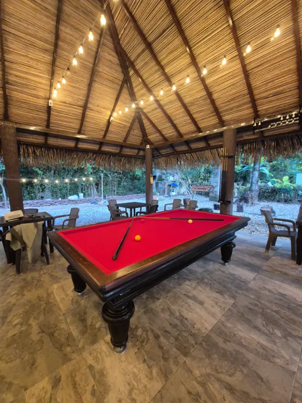 Arquitectura tipo Bali. Este chalet cuenta con Mini Playa de arena artificial, Cinema al aire libre para disfrutar películas desde la piscina o el jacuzzi, Suite con Cama King y vista a la piscina, , baño privado, BBQ con parrilla, vista al río y sendero ecológico. Pet Friendly Restaurante Bar con Bolirana, Tejo, Ping pong, Billar, Juegos de mesa, Minimarket, Spa Turco Masajes, Tina de hielo.