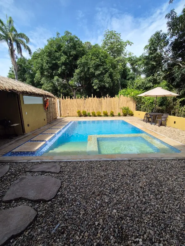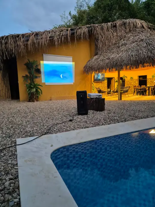 Arquitectura tipo Tailandesa asiatica. Este chalet cuenta con Cinema al aire libre para disfrutar películas desde la piscina o el jacuzzi, Suite con Cama King , baño privado, BBQ con parrilla, vista al río y sendero ecológico. Pet Friendly Restaurante Bar con Bolirana, Tejo, Ping pong, Billar, Juegos de mesa, Minimarket, Spa Turco Masajes, Tina de hielo.