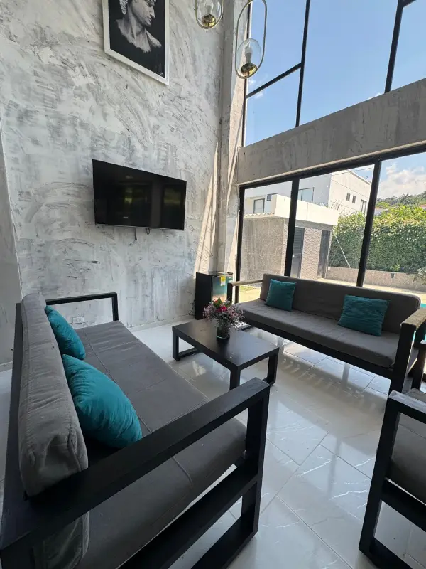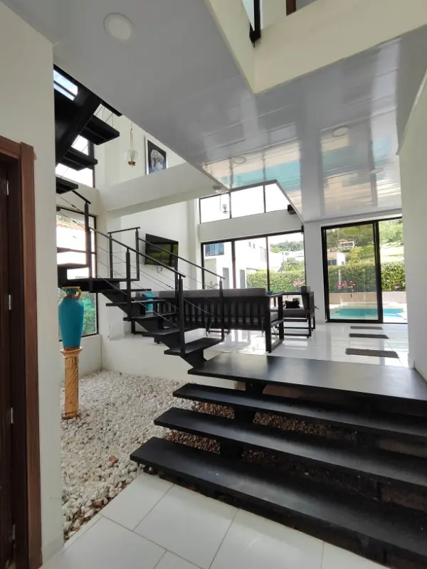 Villa de arquitectura mediterránea contemporánea con Mini Cine privado para ver películas desde la piscina.. Ubicada en condominio campestre seguridad privada 24 horas , piscina y jacuzzi privado, Suite con Smart TV, Walking Closet, vista a la piscina, Baño privado, BBQ, Cocina integral, llegada autónoma , comedor exterior, wifi de alta velocidad, Minibar, Sala de doble altura con Smart Tv y ventilación con vista a la piscina, desayuno con vista a la piscina, parqueadero privado.