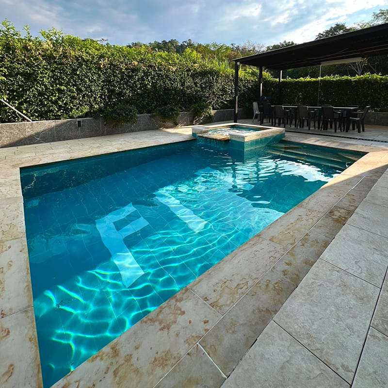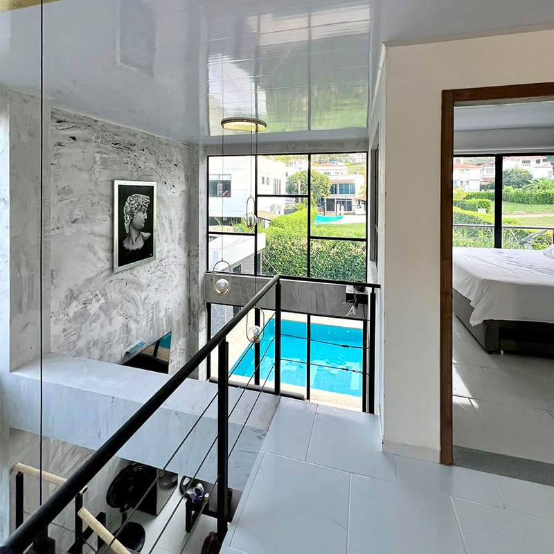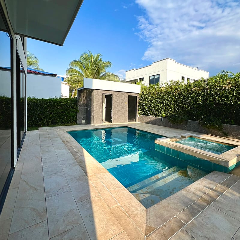 Villa privada de arquitectura mediterránea contemporánea. Mini Cine privado para ver películas desde la piscina.